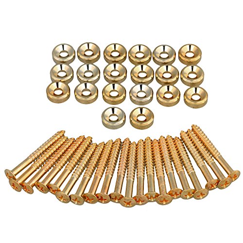 Studio : etfshop Publisher : etfshop Product Description Note:There is a little difference between the color and object Feature: 1.It is made of metal 2.Ideal replacement for worn out parts 3.For all electric guitar and bass guitar 4.Come with washer and nuts,ready for use. Specification: Brand name:Yibuy Material:Metal Color:Gold Diameter:15mm Inner Hole Diameter:6.5mm Height:5.25mm screw length :45mm Dimension:15 x 5.25mm/0.56 x 0.21 inch(Dia x H) Weight:175g Package Content: 20x Gold neck joint bushings/ screw Each item is qualify checked with a unique Manufacturing Part Number lable on the inner package,in order to confirm if it is authentic item sold by our store. Any question,please contact and send us the MPN lable information. 0