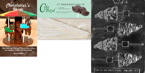 Cybrtrayd 'Cute Witch Lolly' Halloween Chocolate Candy Mold with 25 4.5-Inch Lollipop Sticks and Chocolatier's Guide