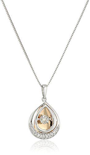 Box-chain sterling silver necklace featuring pear-shaped pendant with cluster of diamonds and rose gold background at center