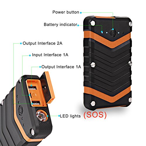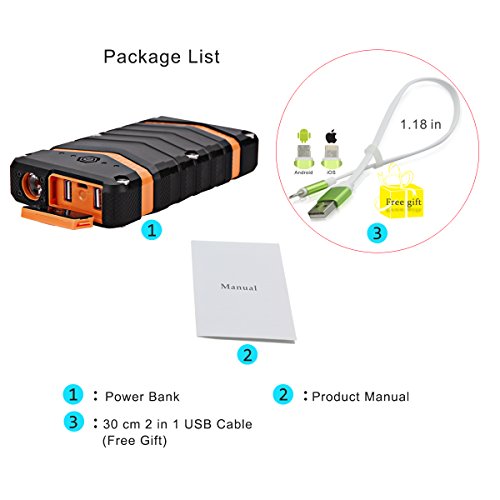 -. Title : 18000mah Portable charger Szcandy Outdoor External Battery Charger with IP67 Waterproof Dustproof Shockproof 3 Lighting Modes Flashlight for iPhone High Capacity Charger