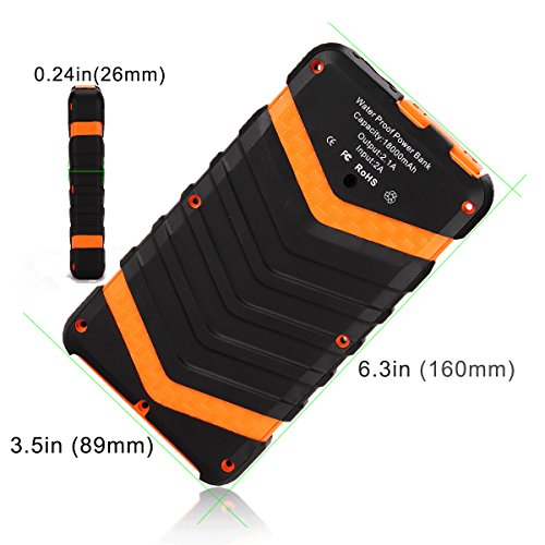 -. Feature : 1.Weatherproof. Dustproof. Shockproof: Can be immersed under 1 meter water for 30 minutes. With an IP67 rating and red design, the power bank effectively resists water, mud or bumps in outdoor activities (with waterproof lid closed). / 2.Professional IP67 waterproof level,18000mah high power capacity with 30m distance SOS LED light / 3.Ultra-High Capacity: Charges Iphone more than 8 times,charges the iPad mini 3 times, the Galaxy S5 4 times, the iPhone 6 almost four times and other smartphones multiple times / 4.Red & Safe: Industrial-grade plastic and screws ensure build quality. CE, FCC, RoHS certified. Multiple circuit protection prevents short circuit, over-discharging and over-charging. / 5.High quality backed with relible wayyranty:100% Brand New and High quality