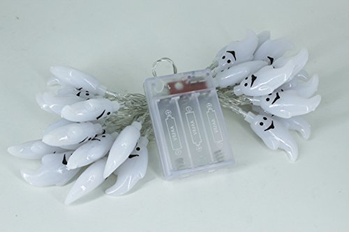 String lights of 20 LEDs ghost on a well made cord. It uses 3 AA batteries and it has 2 different modes. Flashing and steady.(Batteries not include)