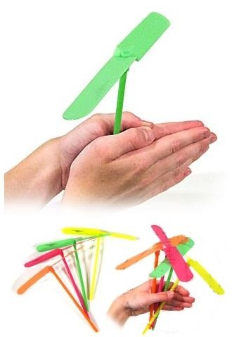 Product DescriptionThese are easily assembled hand powered helicopters. Colors may vary.0