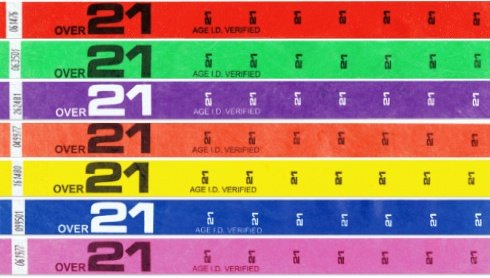 -. Title : Tyvek Over 21 Wristbands - 7 Assorted Colors - 500 Wristbands PER Pack - 7 Packs - 3,500 Wristbands in Total (National Bingo)