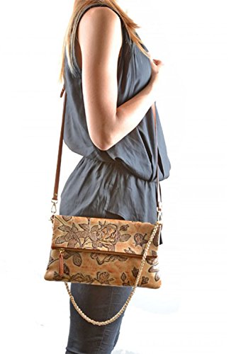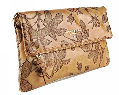 Product Description Cuoieria Fiorentina Italian leather pochette handbag. This beautifully crafted Italian purse holds it all with style. Made from Italian embossed tooled leather. Gold-tone hardware. Zip closure. Lined compartment. Interior zip pocket. A style to take you from day to night. Made in Italy. 0
