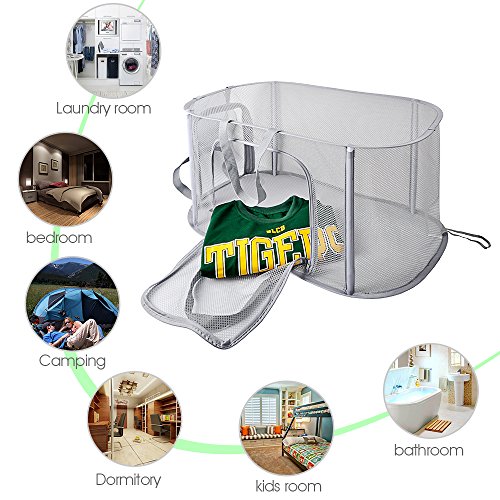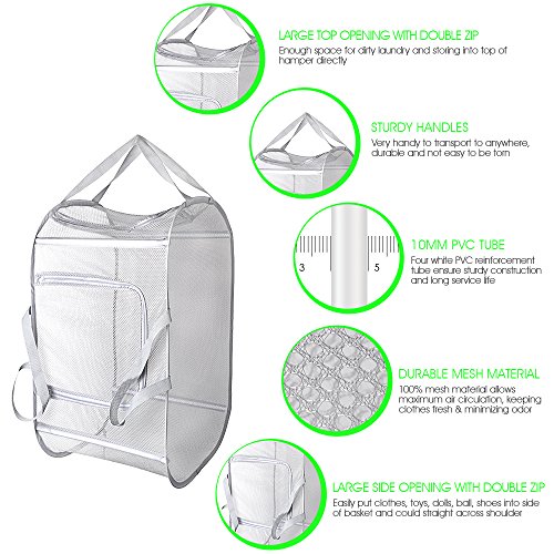 Double Opennings &zipper closure- Opennings on BOTH top and side provide two access for your laundry making the mesh laundry hamper more practical in use, it can be stood upright as a laundry hamper or lay down as a laundry basket. Zipper closure prevents clothing from spilling out.