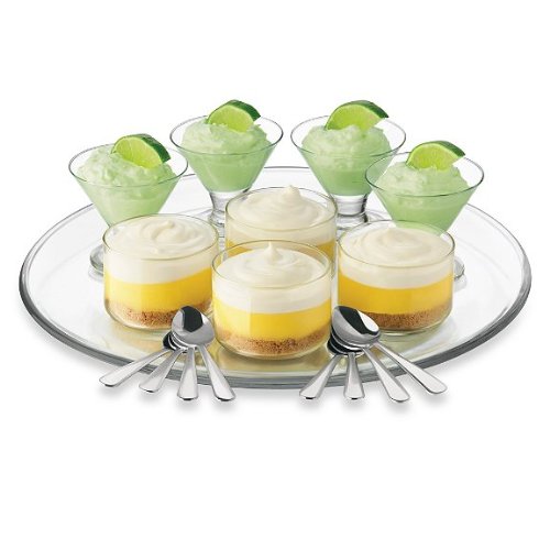 -. Feature : Four 5.25oz glass dishes, four 2.75oz glass dishes, 1 glass serving plate, 8 stainless steel spoons, 1 recipe card / Wonderful way to present delicious desserts or appetizers in little servings, original box doubles as storage box / Great wedding, housewarming or host gift / Dishwasher safe