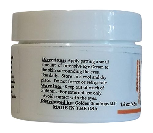 -. Title : GOLDEN SUNDROPS, EYE CREAM, (1.5 OZ), 100% NATURAL, ORGANIC, E-MAGIC / ROSE PETALS, INTENSIVE, ENRICHED, WITH, CARROT SEED, ROSE HIP, HYALURONIC ACID, VITAMIN C, AND, VITAMIN E, PRVENTS, AND, MINIMIZES, WRINKLES, PUFFINESS, BAGS, DARK CIRCLES, FINE LINES, IN THE DELICATE, FACIAL, SKIN, AROUND THE EYES, MAKES THE EYES LOOK MORE YOUTHFUL, AND, BRIGHTER, DECREASES, VISIBLE, SIGNS, OF, AGING, MOISTURIZES, REJUVENATES, 1.5 OZ / 42 G, MADE IN THE USA.