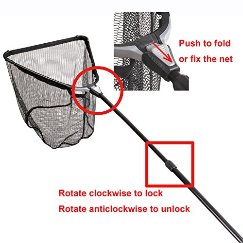 Fiblink Folding Aluminum Fishing Landing Net Fish Net with Extending Telescoping Pole Handle