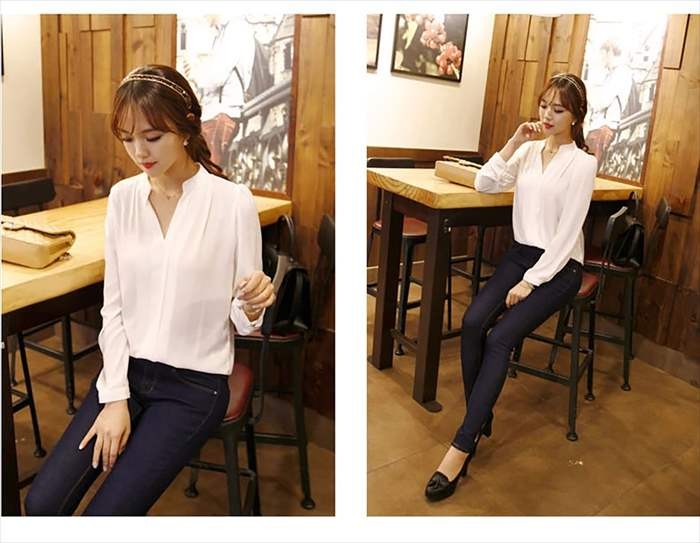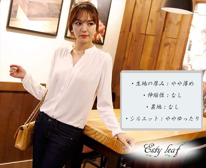 ●胸がざっくりと開いたVネックの大人シフォンブラウス。●スタンドカラーにする事で、かっちりとし過ぎない、こなれ感を演出します。 ●デコルテがきれいに見え、女性らしいエレガントな印象で、小顔にも期待できます。 ●コンパクトなデザインなので、こちら一枚でも、コートやジャケットのインナーとしても大活躍♪ ●さらっとした素材で着心地もよく、ヘビロテ間違いなしのオススメの一枚。 ●清楚な印象で、通勤やオフィスにはもちろん、パーティーや二次会、卒園式 入学式など、フォーマルな場面にも活躍します。 ★サイズ展開【M】着丈66cm バスト88cm 袖丈58cm 肩幅36cm 【L】 着丈67cm バスト92cm 袖丈59cm 肩幅37cm※平均での採寸となりますので、多少の誤差が生じる場合がございます。ご了承くださいませ。★カラー展開 ホワイト ★商品詳細 【素材】:ポリエステル100% 【透け感】:あり 【厚み】:やや薄め【裏地】:なし 【シルエット】:ややぴったり 【伸縮性】:なし【付属品】:なし (コーディネート使用の衣類、アクセサリー等は付属しません)20代 30代 40代 50代