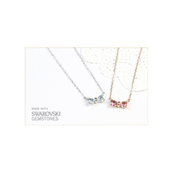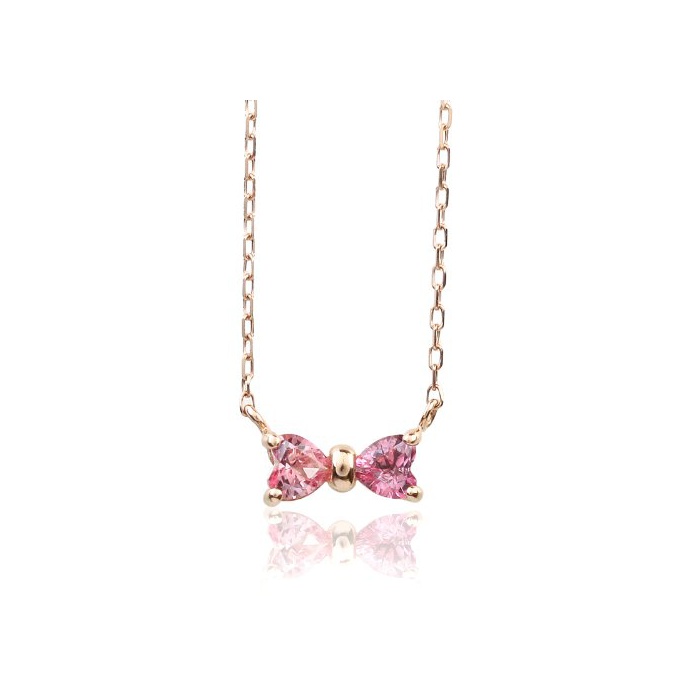 Nadi [me 류《구스》]me.luxe K10PG 스와로브스키 핑크 topaz 리본 핑크 골드 넥크리스 40cm