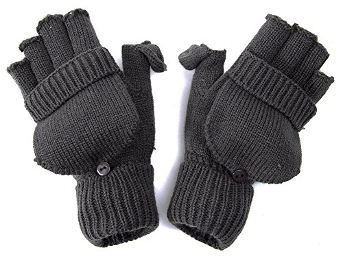 (Gravity Threads)/Accessories/Cold Weather Accessories/DIRECT FROM USA/Winter Fingerless Flap Knit Mitten Gloves - Dark Grey ( 2 pack )