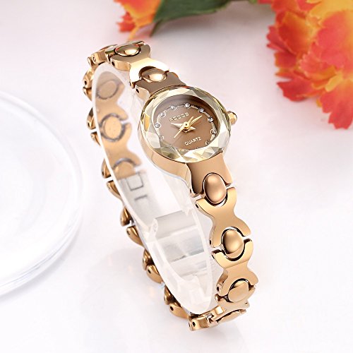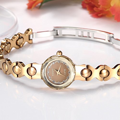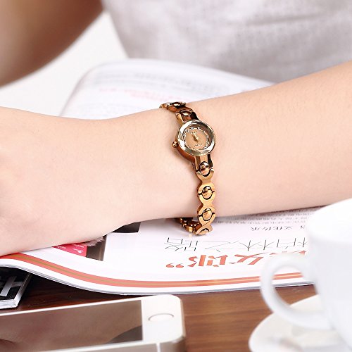 【FEATURES】 Elegant round watch featuring gold dial with 12 rhinestones and stick hour markers, cutting bezel that feels luxurious and gorgeousness.