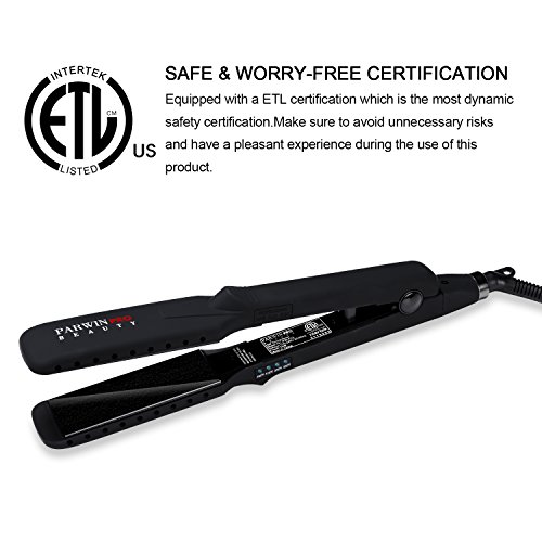 1.25 inch Floating plates: PARWIN BEAUTY use 1.25 inch Ionic Ceramic Tourmaline-Infused heating element & a unique floating plate design for professional for faster heating up, you can forget the problem of dry hair and get convenience in no time. The floating plates never pull your hair, 1 inch plate width wide enough for any hair length, a yet narrow enough for bangs.