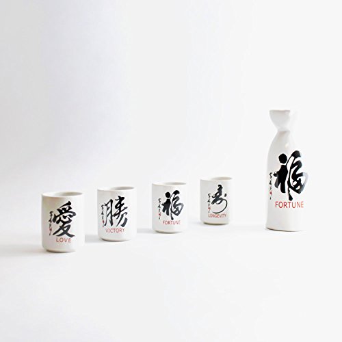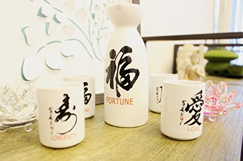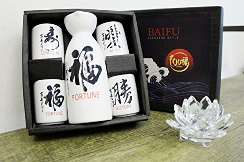 (BaiFu)/Kitchen Dining/Tableware/DIRECT FROM USA/Traditional Japanese Classy Sake Set 4 Cups Fortune Victory Love Longevity F15696 (2lb) Japanes...