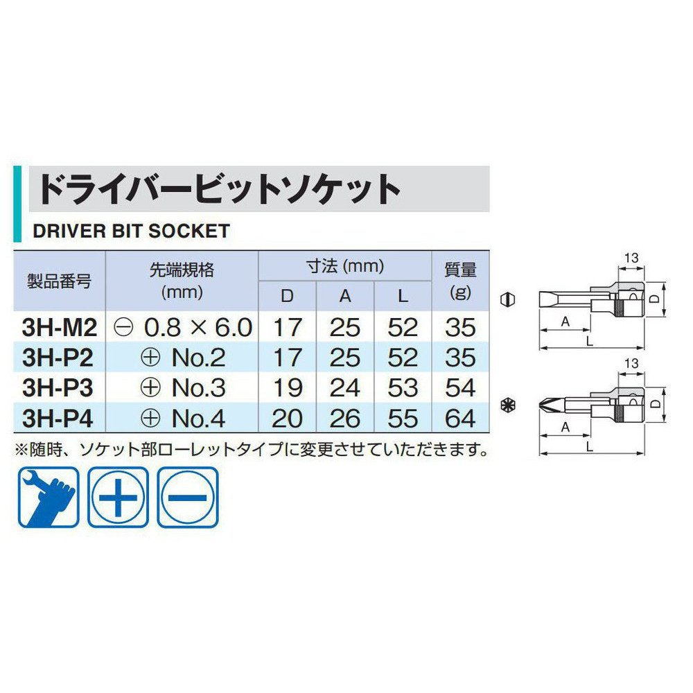 ● The tip is a socket with a driver bit shape