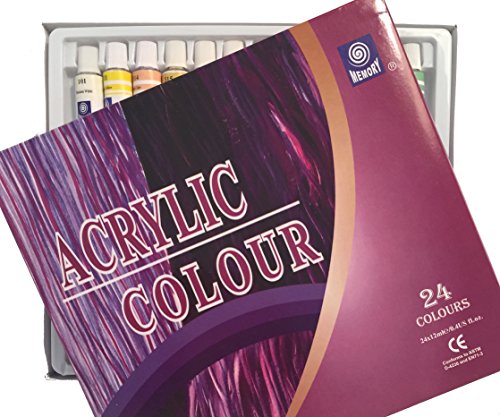 Our acrylic paint set includes 24, 12ml aluminum paint tubes with screw caps. We provide an affordable paint set with professional quality paints for both beginner and expert painters. After researching and testing many different formulas, we decided on Memory brand for the following reasons: this painting set has a variety of colors perfect to use as they are or to blend for even more colors; the durable packaging is made from recycled materials and displays the paints for easy selection; the bold array of colors are mixable, pure, lasting, light-fast and includes earth and flesh tones for landscapes, abstracts and still life paintings and the easy glide formula has a smooth buttery flow for premium results. This educational art set is great for teaching kids about fine art with a pallet of bright, strong tints. The thick, creamy formula works well with gesso for no bleed through on thin pages. This is the best craft paint set for holiday craft projects and DIY home decor projects. Colors included are: Titanium White, Lemon Yellow, Flesh Color, Yellow Ochre, Naples Yellow, Mid Yellow, Yellow Orange, Vermillion, Scarlet, Crimson Lake, Burnt Sienna, Burnt Lumber, Raw Sienna, Raw Umber, Emerald Green, Pale Green, Sap Green, Olive Green, Viridian, Cerulean Blue, Cobalt Blue, Ultramarine Blue, Phthalo Cyanine Blue, Lamp Black.Feature