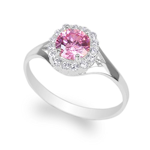 -. Title : JamesJenny Ladies 10K White Gold Stylish Halo Solitaire Ring with 0.7ct Round Pink CZ Size 4-10
