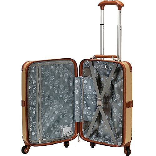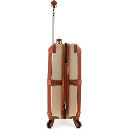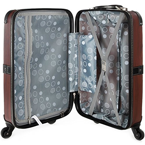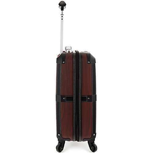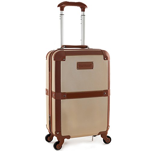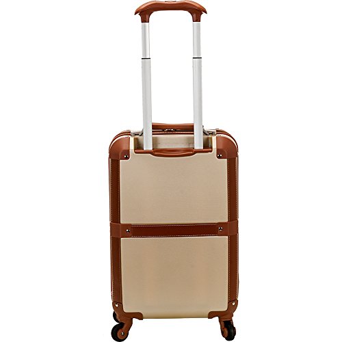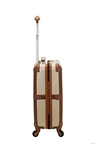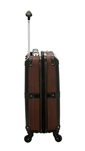 Studio : Fox Luggage Publisher : Fox Luggage Binding : Apparel Product Description Vintage look rolling trunk will bring a sense of sophistication to your travels. This trunk has a sense of nostalgia but has been updated with features for the seasoned traveler. Four full rotation wheels make effortless navigation through crowds and to your destination. Made of abs which provides impact resistance and toughness for long time use and handling. Corners are wrapped in polyvinyl chloride for additional protection. Telescoping handle and top carry handle, interior mesh zip pocket and elasticated pocket storage. Measure 13 inch l x 8 inch w x 20 inch h and weighs only 6.5 lbs 0