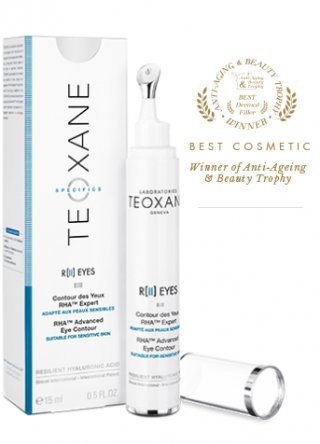 R[II] EYES combines the TEOXANE anti-aging complex (RHATM Technology, Dermo-Restructuring Complex and NovHyal) with active ingredients recognized for providing an expert anti-fatigue and anti-aging solution, developed specifically for the eye-contour area. A formula specially designed to be fragrance-free for sensitivity around the eyes.