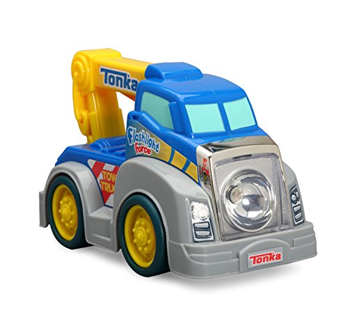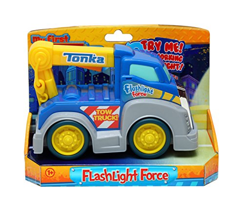 The My First Tonka Flashlight Force Tow Truck is perfect for little ones day or night! This adorable tow truck features a real, working LED flashlight to light the way to the next adventure. With My First Tonka Flashlight Force, little ones never need fear the dark again! Also available in Fire Rescue. Appropriate for ages 18 months and up. 3 AA batteries included.Feature