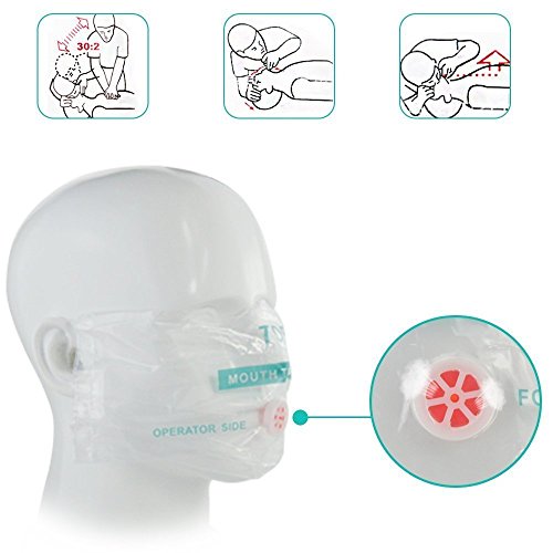 -. Feature : This product is equipped with a one-way filter valve, in case of emergency, rescue workers from the barrier protection. If remove one-way valve, the mask can be connected to the use of the recovery device. / Protect rescue person from direct contact with the patient's mouth, nose and face for artificial respiration. / Transparent masks help the rescuers observe the color and vomit of the patient's lips. Oxygen can be supplied to the patient when necessary. / The mask is easy to clean and can be reused. Check valves are disposable. / Mask material meets the ISO10993 medical device biological evaluation requirements, all parts are not latex. Note: This CPR Mask is not intented to use for infants.