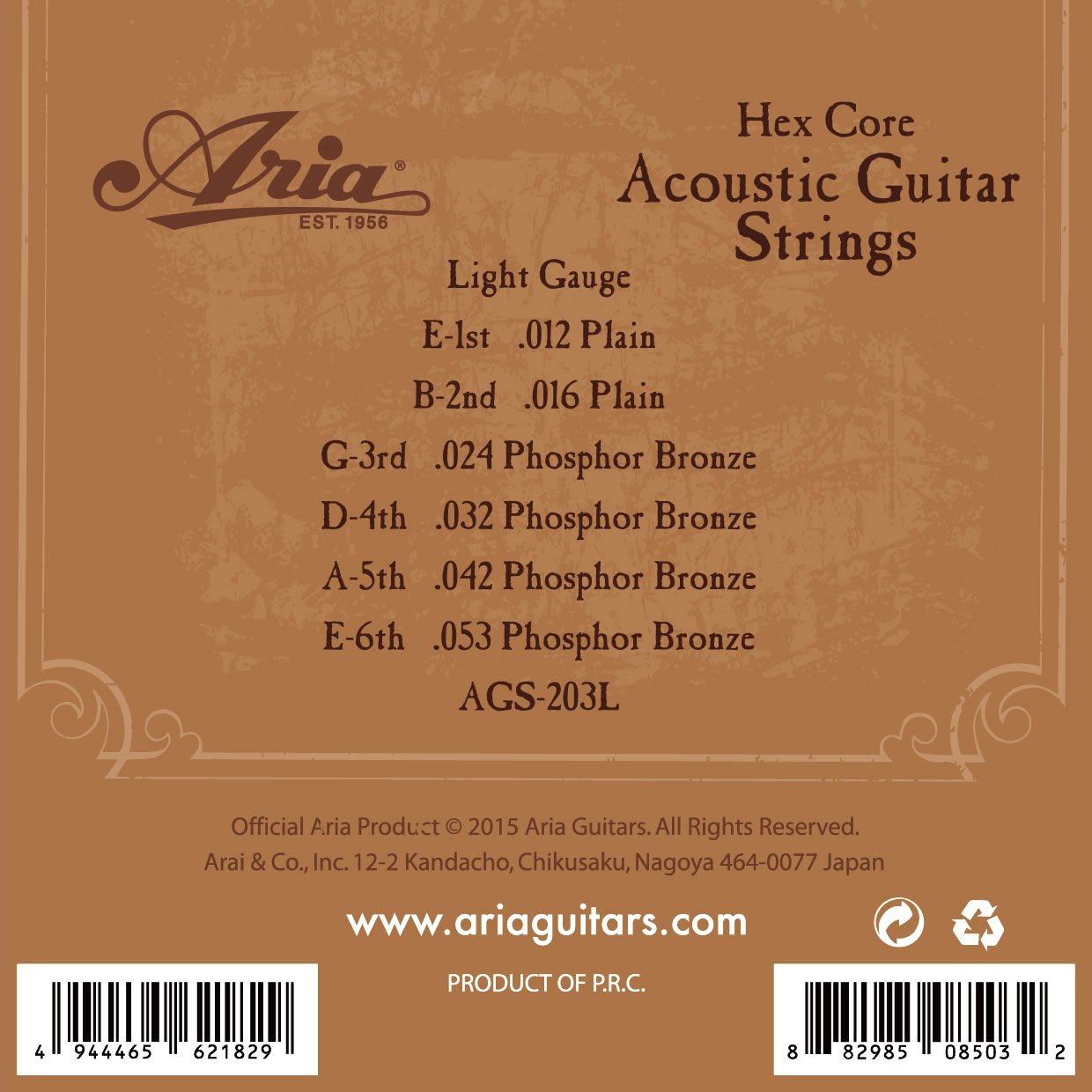 Aria Ags-203l 3 Set Strings Acoustic Guitar Pack