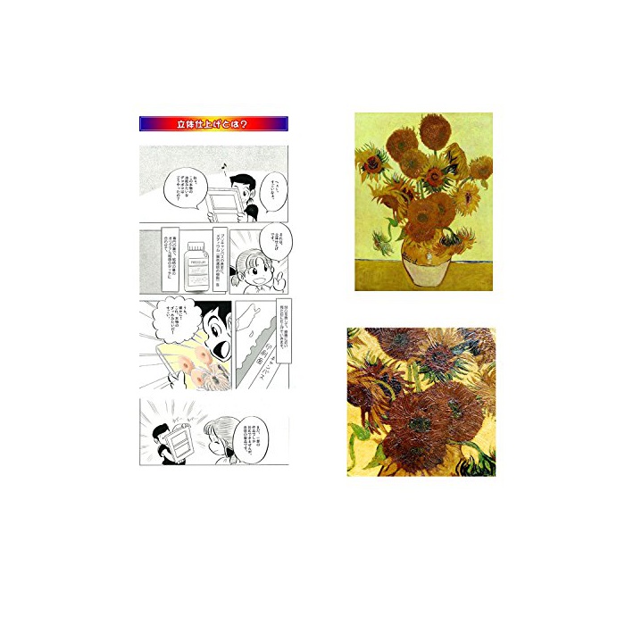 입체 마무리란:프리 캔버스(복제화)의 인쇄면 표면에,Medium(무색 투명의 수지)를 오리지날 회화의 터치 에 따라 요철을 세우고, 원화에 가까운 외형으로 마무리했습니다.