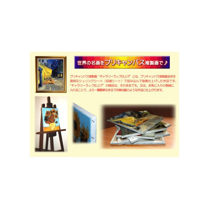 프리 캔버스 복제화란,”세계의 명화”를 아트 캔버스(천)에 직접 인쇄하고,”켕김(팽팽하게 땅김/의욕) 캔버스 마무리”로 한 상품입니다.아트 캔버스(천)에,직접 인쇄 하는 것으로 리얼함을 연출!종이에서는 표현할 수 없는 캔버스지의 가지는 질감 어느(있는) 예술 적 표현에 전달합니다.