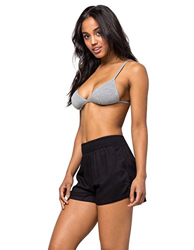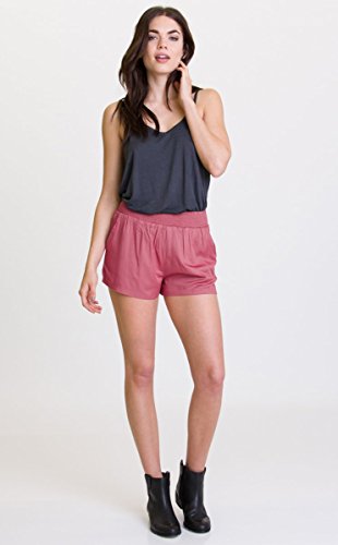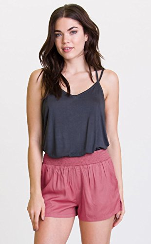 Loose-fitting beach short featuring smocked waistband and slash pockets at front