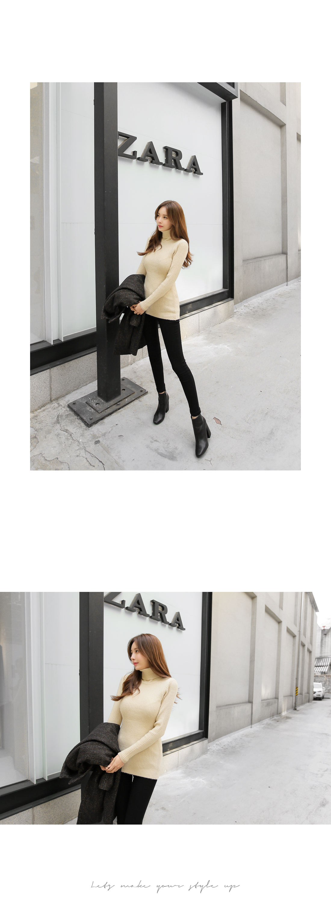 폴라넥 디자인으로 목을 가볍게 감싸주어