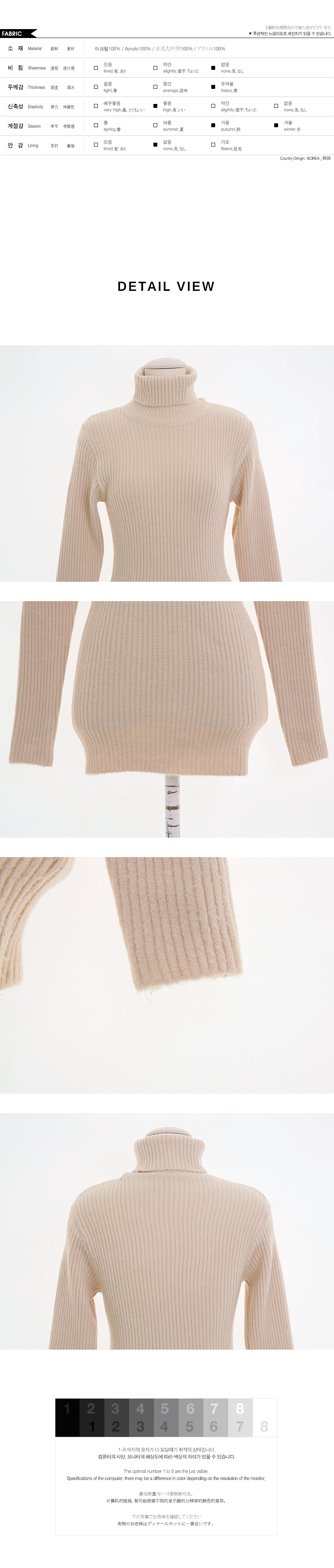 모델이 착용한 컬러는 베이지 입니다.