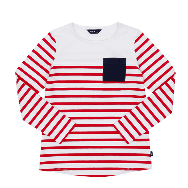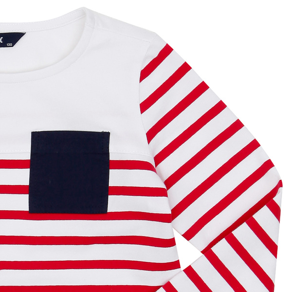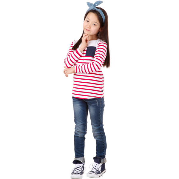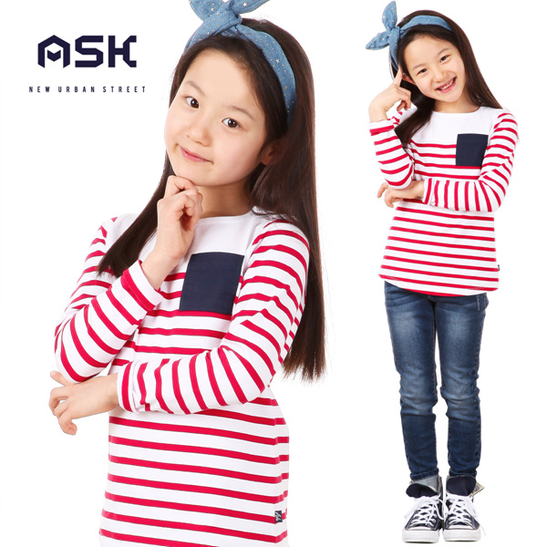 ■상품설명- 포켓배색이 포인트인 깔끔한 스트라이프 패턴의 여아 티셔츠.