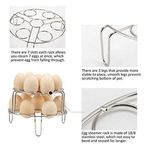 3.These egg racks are stackable for holding in vertically, you can steam 14 eggs at once in pot.