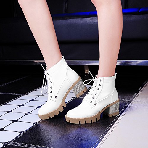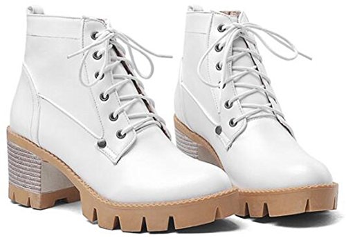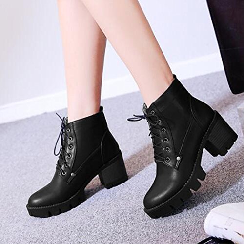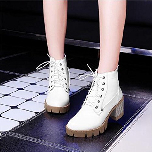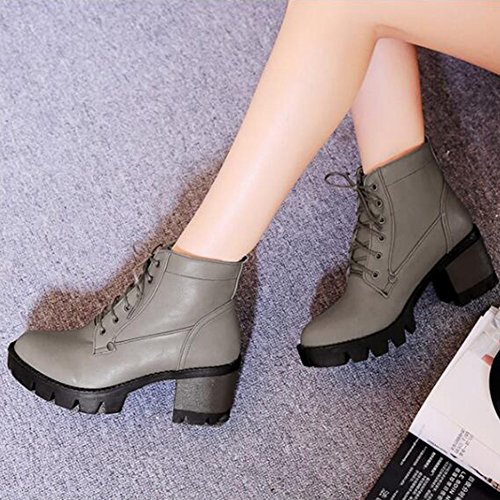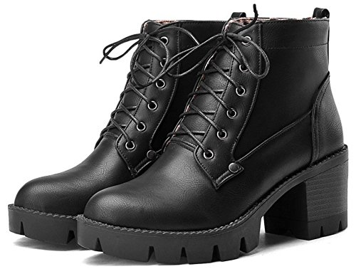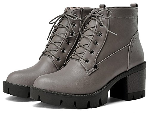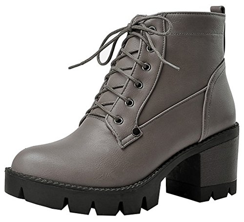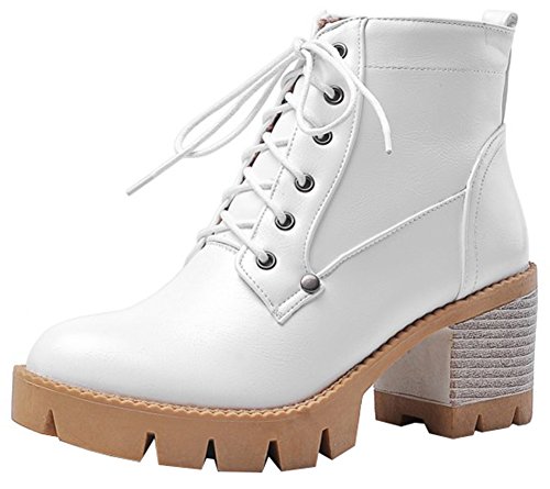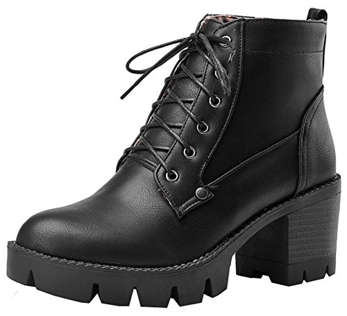 (Mofri)/Women's/Boots/DIRECT FROM USA/Mofri Women's Trendy Stacked Block Medium Heel Platform Ankle Booties Round Toe Lace up Short Boots
