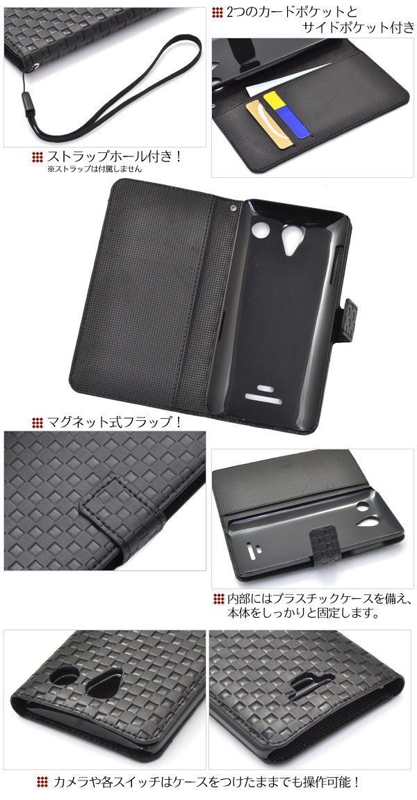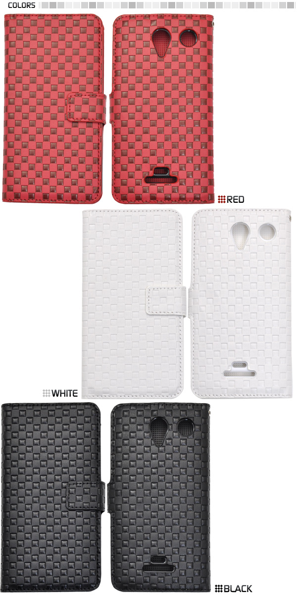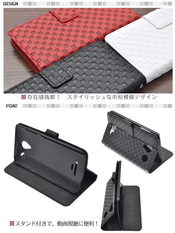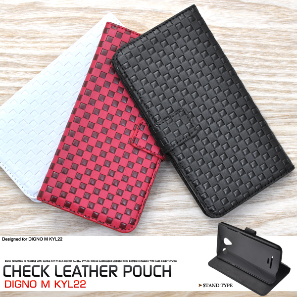 市松模様レザーデザインのDIGNO M KYL22用スタンドケースポーチ。