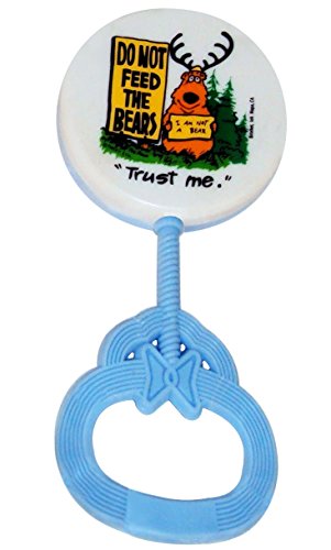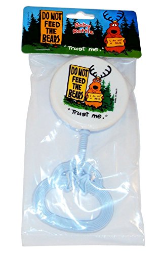 [Product Information]- PLASTIC BABY RATTLE : The picture shows a bear wearing antlers and holding a sign that says "I Am Not A Bear".