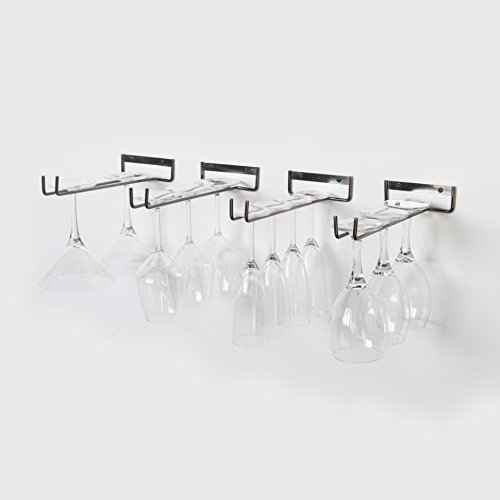 -. Feature : Get Organized: Store your stemware where you can see to easily reach for a glass to pour yourself some wine with ease. This rack is great for hanging on your unused wall space to help you tidy up your counter top. / Simple to Install: This 4-sectional rack comes fully assembled and ready to mount on your wall, to save you time from taking a trip to the hardware store the mounting screws and anchors are also included in the packaging for easy installation. / Inexpensive: If you need a stemware storage rack for an affordable cost, this one is great for organizing your cabinets, counter top and your bar store. This wall mount rack can be hung by your wine bottles to make wine hour more convenient. / Kitchen Décor: Feel like a gourmet cook by organizing your kitchen, your hard to store fluted glasses could now have a nifty home, so you can easily reach for your favorite one without any frustration. / Versatile: Each of the 4 pieces hold up to 3 wine glasses with ease, all 4 holding up to 12 glasses with a 3 1/2" base. Don't tuck your beautiful, vintage and antique stemware inside your cabinets, hang them separately, so reaching for one is no longer a hassle.
