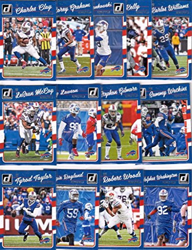 Buffalo Bills 2016 Donruss NFL Football factory sealed 15 card team set including Jim Kelly, Tyrod Taylor, LeSean McCoy, Karlos Williams, Sammy Watkins, Robert Woods, Charles Clay, Stephon Gilmore and Corey Graham plus rookie cards of Adolphus Washington, Glenn Gronkowski, Reggie Ragland, Shaq Lawson, Cardale Jones and Jonathan Williams shortprinted Rated Rookies #376.