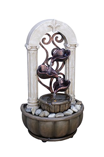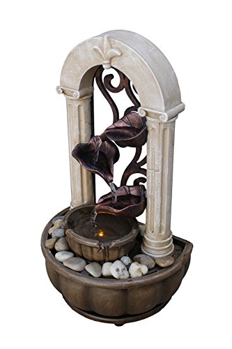 11"H Flowing Tiered Leafs Dual Power LED Fountain with Natural River Rocks (Adapter NOT Included)