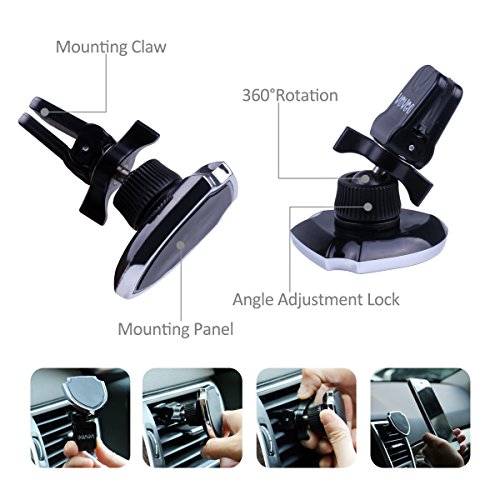One-handed Operation, Fully Adjustable with 360°Rotation:Cradle-less, one-step magnetic mounting system allows you to dock and remove your device with one hand.360 degrees rotation, make sure that you can keep your eyes on the road instead of fumbling around with your smartphone, trying to find a less than ideal position.