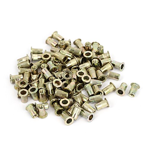 uxcell 100pcs M4 Carbon Steel Serrated Body Flat Head Blind Nuts Nutserts