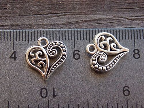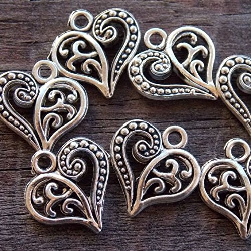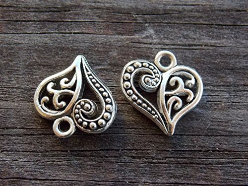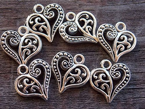 30 Antiqued Silver Filigree Heart Charms 15 mm x 24 mm (NS607)