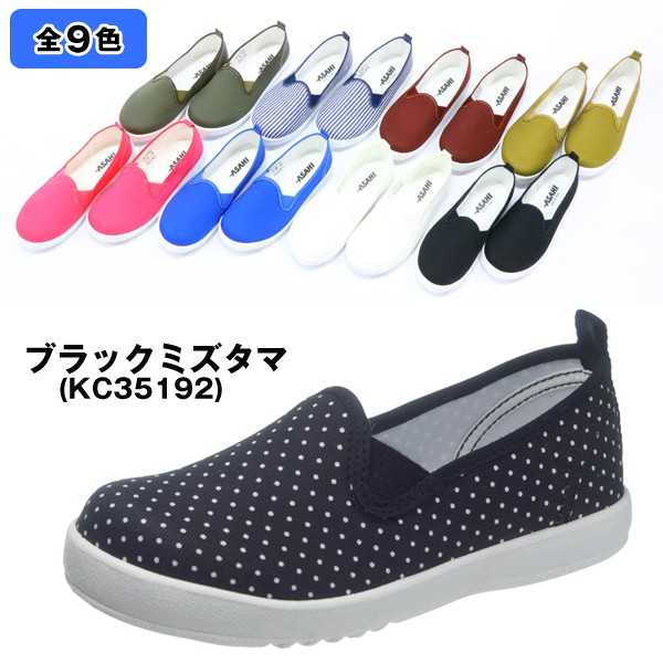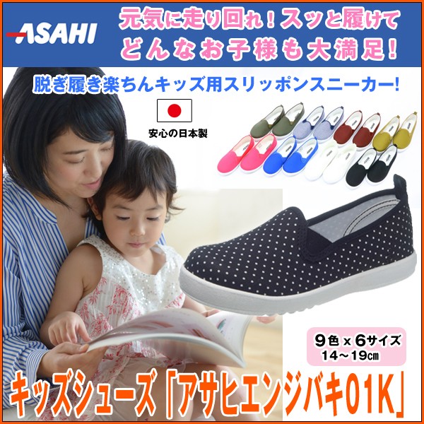 安心日本製!脱ぎ履き楽ちん!キッズ用スリッポンスニーカー!元気に走り回れ!すっと履けてどんなお子様も大満足! 大人気のスリッポンスタイルのスニーカーです。 何と豊富に全9カラー! お洋服に合わせて履きたくなっちゃう、おしゃれさんにもおススメだよ! 2Eで履きやすく、老舗国内メーカーによる安心の日本製。 汚れたら、ザブザブ洗えて、長く愛用できます。 紐結びがまだ苦手な小さなお子様から、幅ひろいサイズ展開をご用意しています。