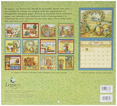 -. Feature : 2017 12-month wall calendar measures 13 3/8 x 12 closed; opened calendar is 13 3/8 x 24 / P.R.Inted in exquisite full color on High quality linen-embossed paper; features a grommet-reinforced drilled hole to ensure tear-free hanging / Features the joyful illustrations of artist Lisa Blowers; includes scripture / Packaged in a protective sleeve that showcases the cover image on the front and each monthly image on the back / Legacy invites you to explore their fresh collections of coordinating calendars, to-do-lists, notebooks, address books, recipe boxes and more