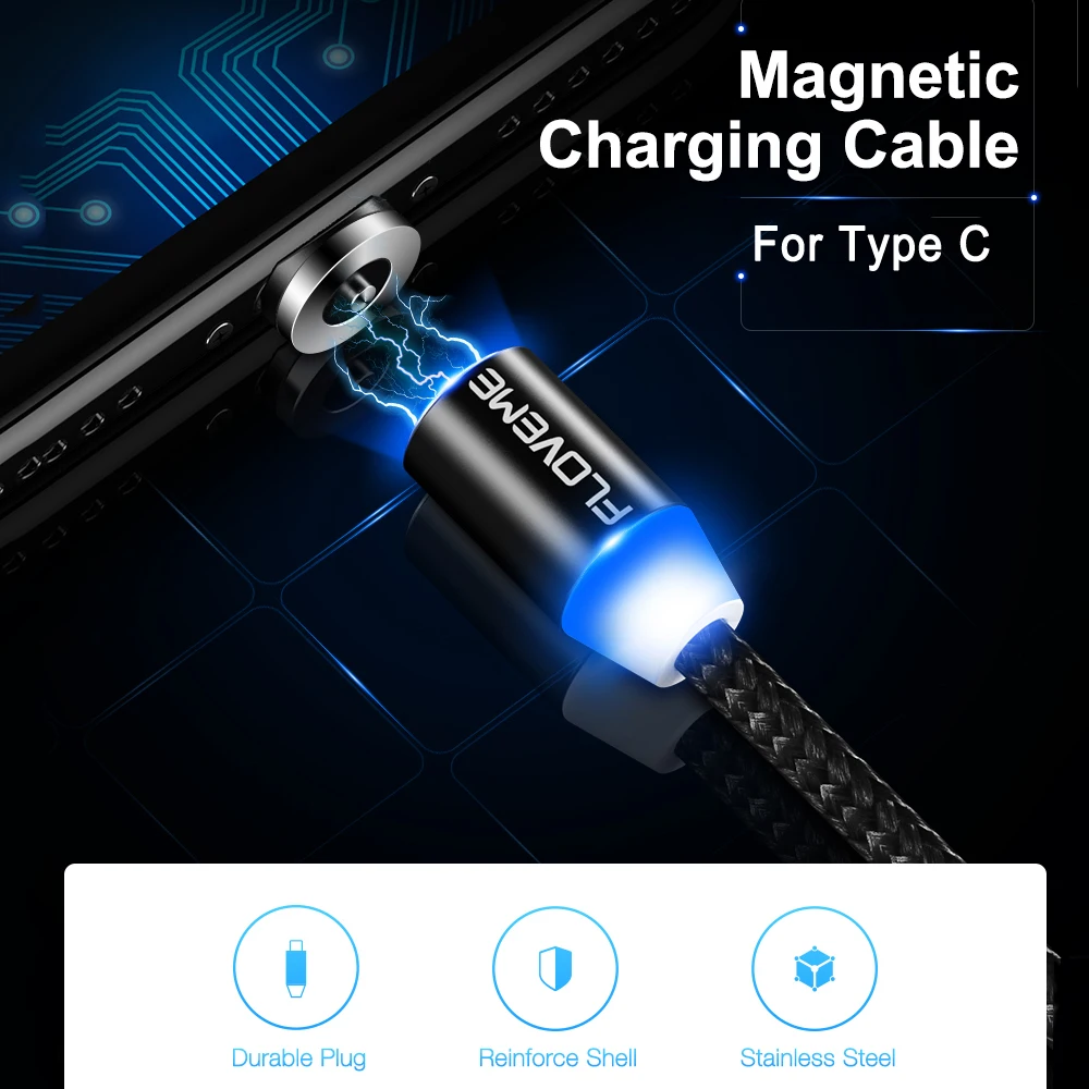 Feature 2:Nylon Braided+Power Protection+LED Indicator Magnet Cable