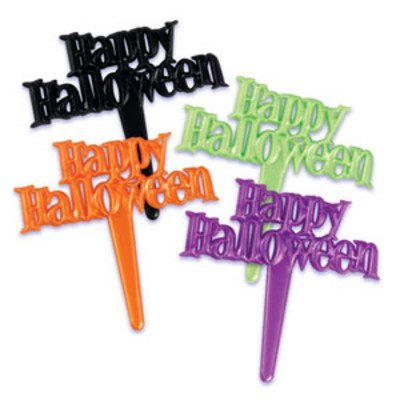 Happy Halloween Pearlized Script Cupcake Picks - 24 pc