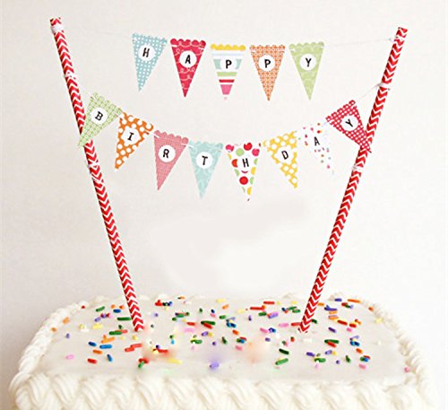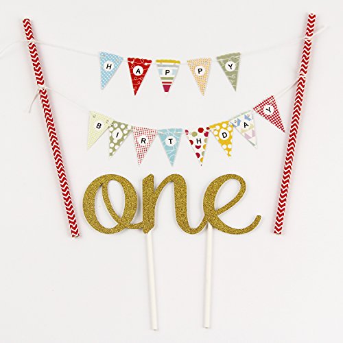 KUNGYO One 1ST Happy Birthday Cake Bunting Banner Small Pink Pennant Flags And Golden"One" Cake Topper