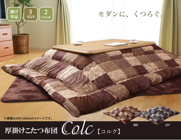 パッチワーク風 こたつ厚掛け布団単品 『コルク』 ブラウン 205×205cm