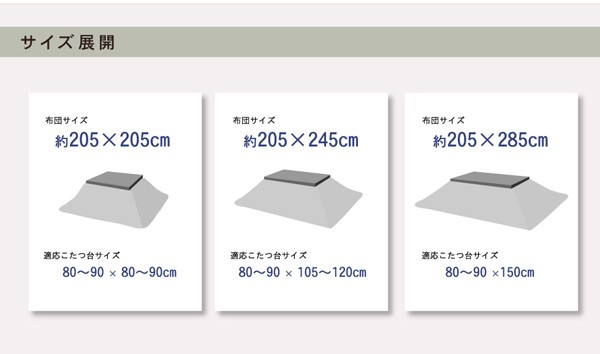 80~90cm角のこたつ台に適応